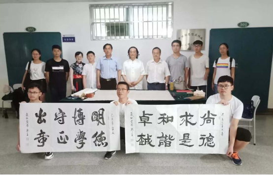 休息期间,郭立先生为求字的同学们写了《论语》中的名句,鼓励大家刻苦求学,以有所成。最后,应李院长之邀,郭立先生为学院题了校训与院训,同学们赞叹于郭立老师的书法之美,现场掌声久久回荡。