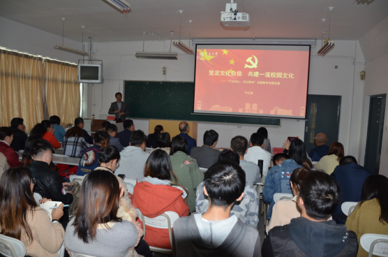 11月7日下午,校党委常委、副校长于红波在金家岭校区西院2号实验楼210教室,以“坚定文化自信,共建一流校园文化”为主题讲“不忘初心、牢记使命”主题教育专题党课。