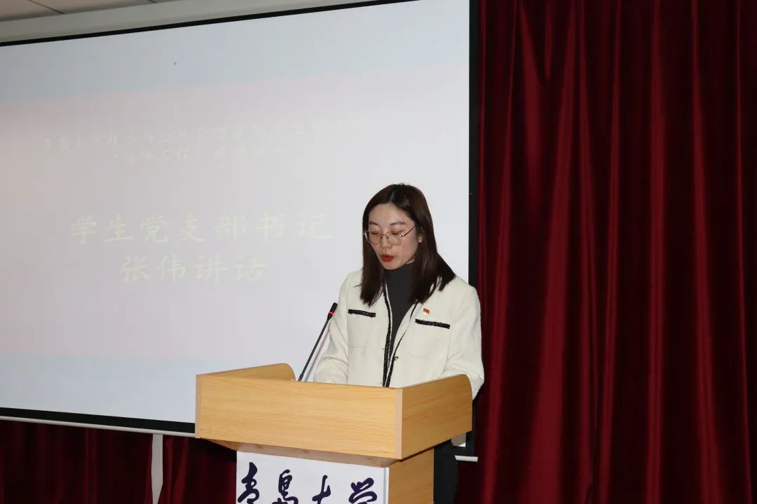 接下来,党委书记隋晓玲带领全体学员总结过去一年中学生党支部党建工作的丰硕成果,对学院未来党建工作寄予深切厚望,并强调学生党支发挥好头雁作用,支部委员们遵循标准化、规范化、科学化的要求,对标平行定级的标准,真正做到一个支部,一面党旗,推动学院党建工作高质量发展。