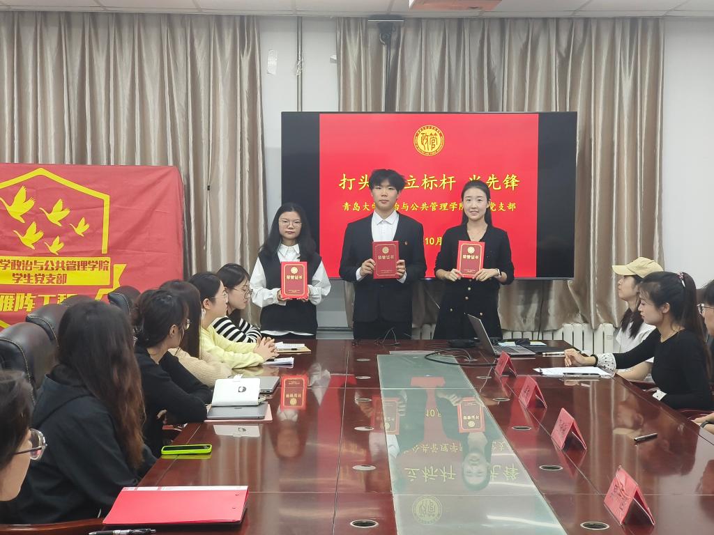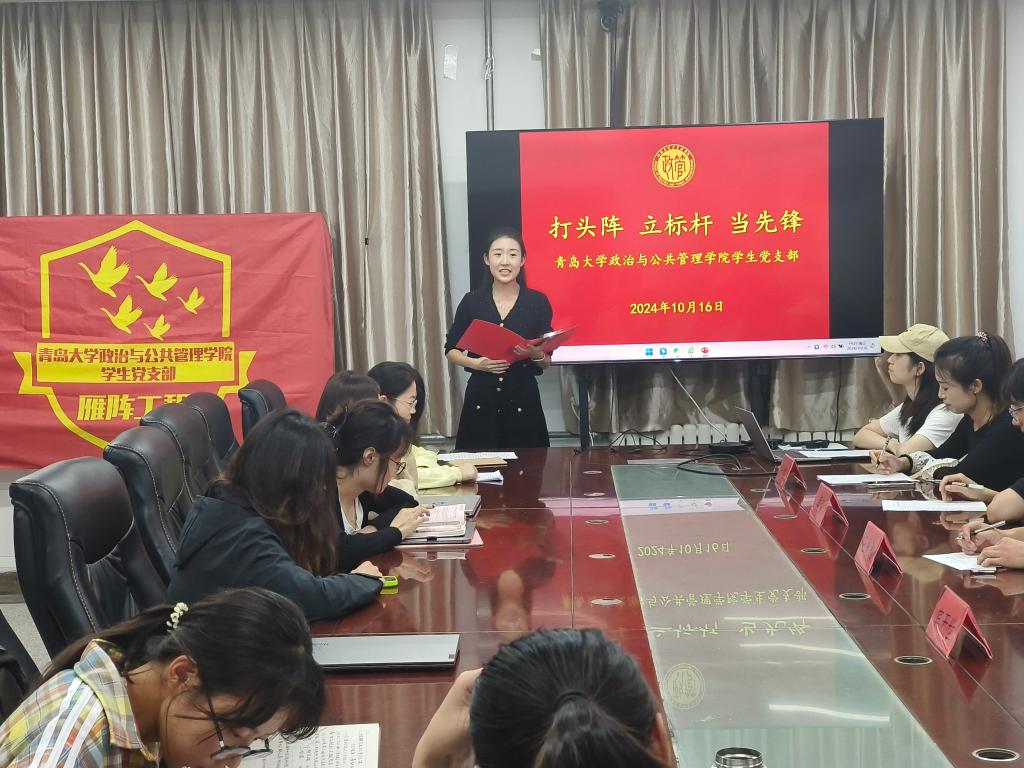 政治与公共管理学院学生党支部在金家岭校区二号实验楼214室举办“打头阵,立标杆,当先锋”主题朗诵比赛。2024年秋季学期全体党员发展对象和入党积极分子参加本次活动。党支部副书记张晴担任主持人。