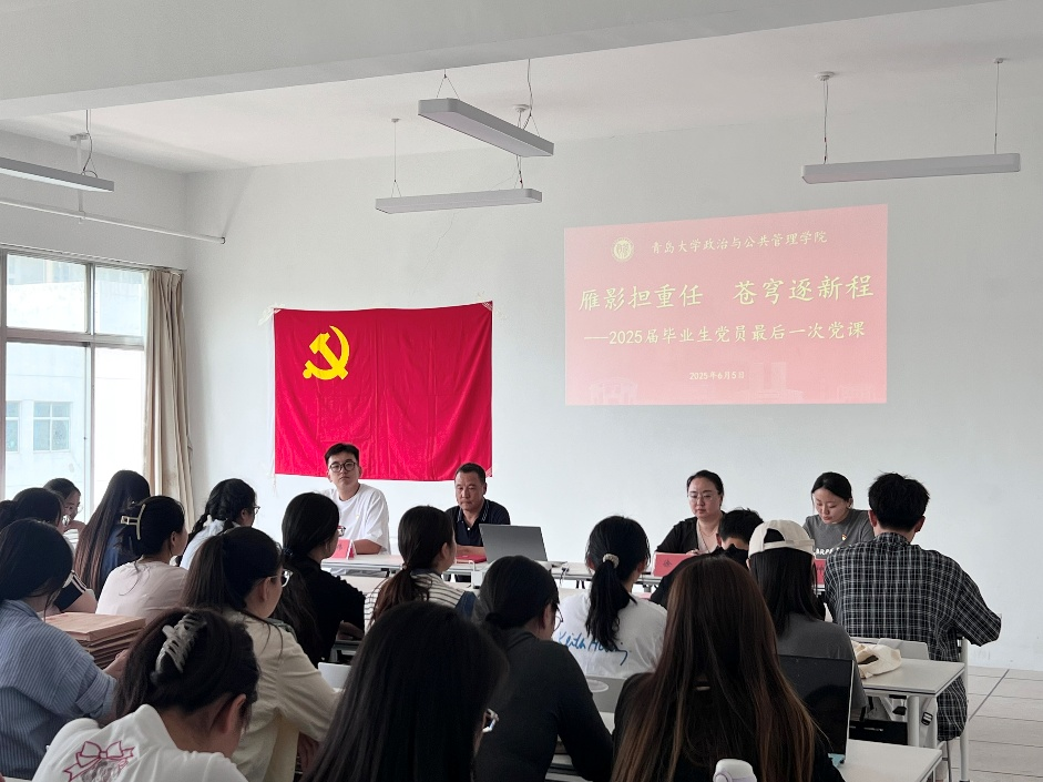 “雁影担重任,苍穹逐新程”——2025届毕业生党员最后一次党课承载着学院的期望和嘱托,希望全体毕业生党员牢记本次党课的所学、所思、所悟、所诺,以纪律规矩为准则,锐意进取,踔厉奋发,让青春在为党和人民事业的奋斗中绽放绚丽光彩。