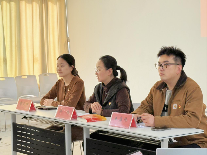 在二号实验楼405举行了“淬炼初心担使命,踔厉奋发向未来”专题党课。学院党委副书记徐伟担任主讲,辅导员老师王嘉伟、商玉坤以及全体帮扶党员、2025年秋季学期党员发展对象和入党积极分子参加本次活动,活动由商玉坤主持。