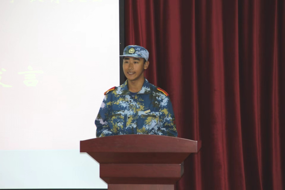 新生代表韩佳序围绕军训体能训练、内务整理、学院活动、中秋晚会等回顾了军训期间的感受、收获与成长。同时代表2024级全体新生做出承诺:一、增强政治素养,提高自身修养,勇担时代重任;二、尽快适应大学生活,规划好自己的大学生活;三、要积极参与社会实践,将所学知识应用于实践,提高自身的综合实力。