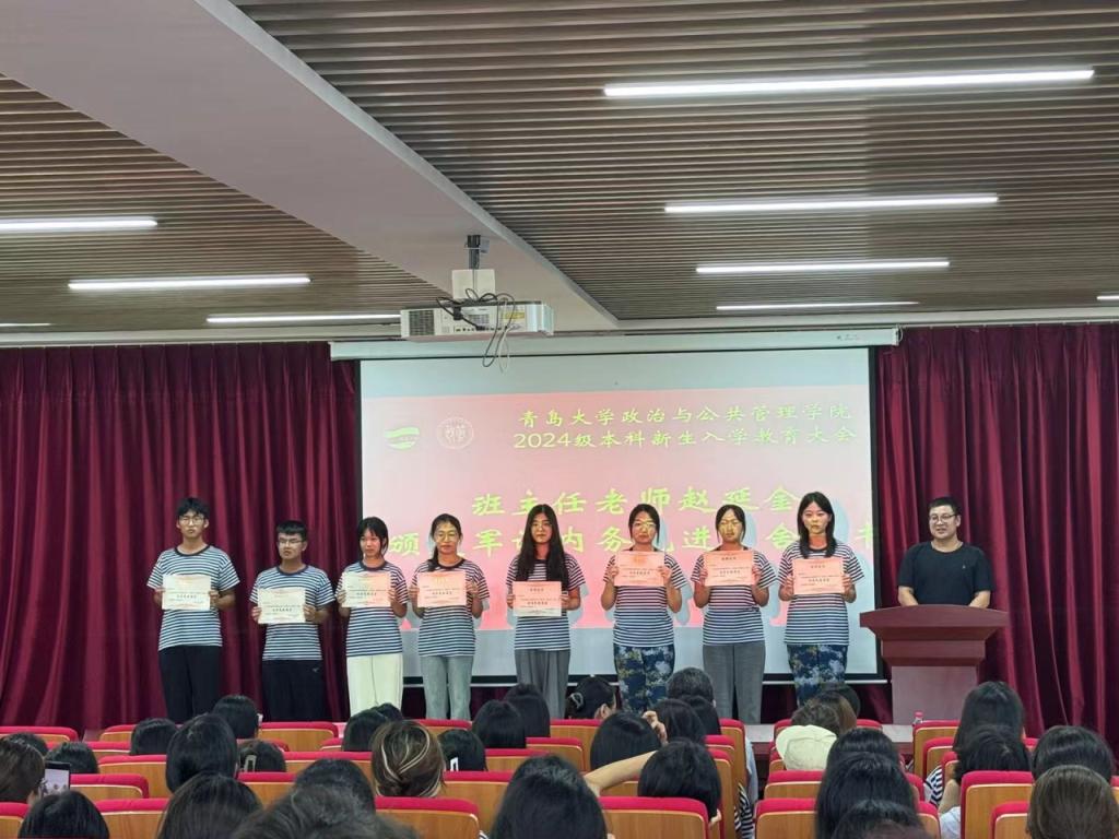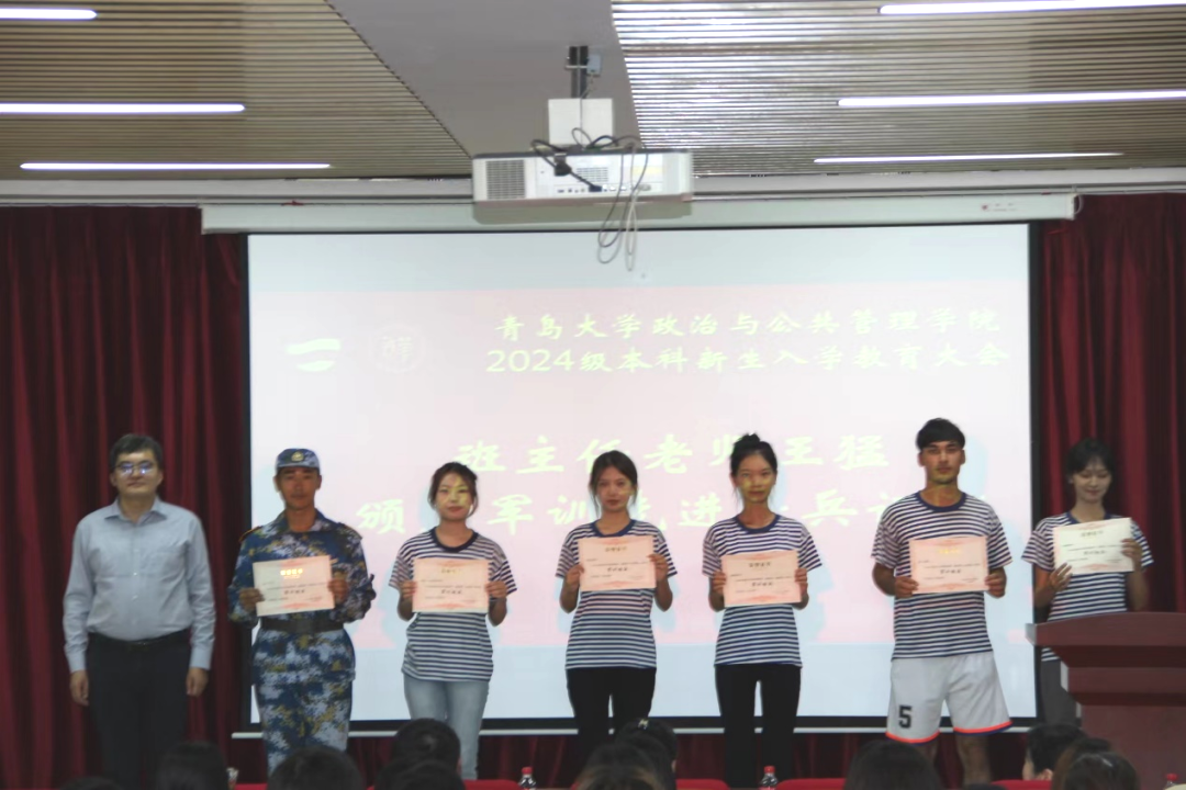 最后,班主任老师王猛、丛霞、赵延金为军训先进标兵、军训先进宿舍、优秀代班颁发了荣誉证书。