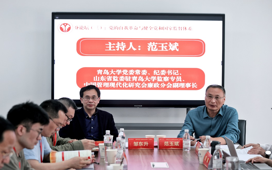 大会全程包括开幕式、主旨报告、四个平行分论坛、闭幕式环节,会议围绕“党的自我革命与全面加强党的纪律建设”这一主题进行了深入研讨。范玉斌受邀主持平行分论坛“党的自我革命与健全党和国家监督体系”并作点评;陈洪连在平行分论坛“党的自我革命与一体推进‘三不腐’”上做了主题发言,发言题目为“以自我革命精神一体推进‘三不腐’体制机制建设”,并同与会专家学者进行深度研讨。