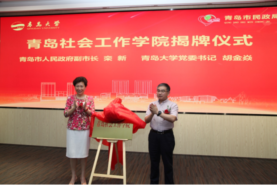 致辞结束后,栾新副市长、胡金焱书记共同为青岛社会工作学院揭牌。