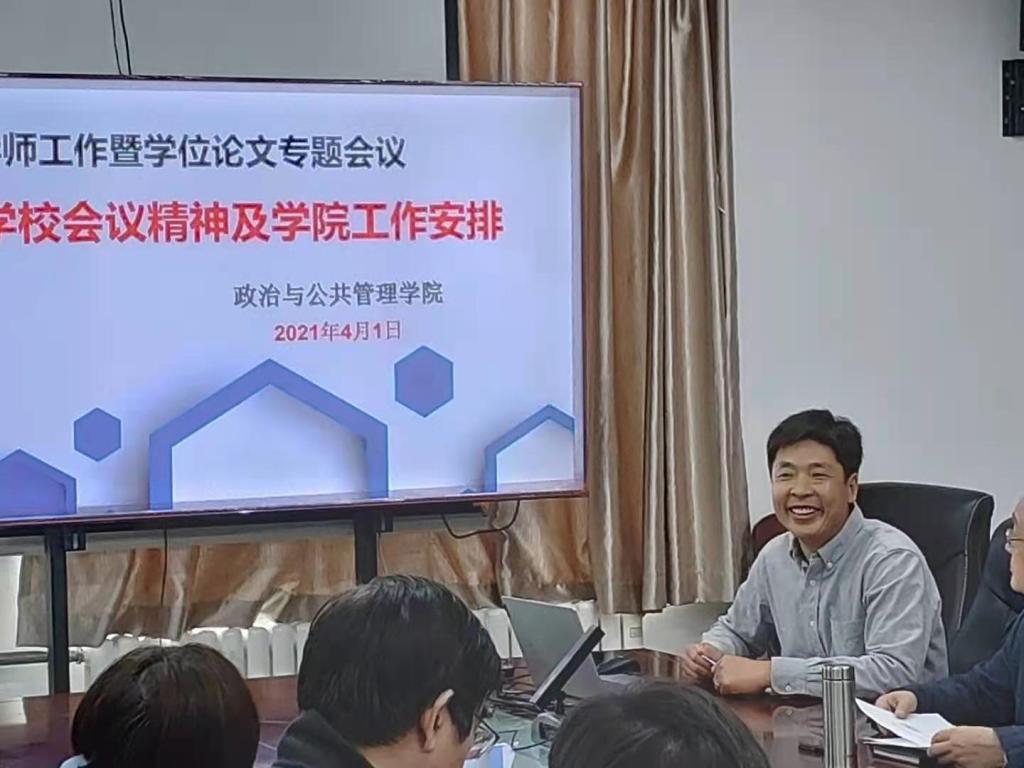 孙百才院长传达了学校会议精神,解读了学校二级单位考核办法以及学位论文的相关要求,并对今后学院硕士和学士学位论文工作进行了具体安排。与会导师们也就如何提升学位论文质量进行了热烈讨论。