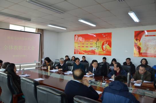 在院多功能活动室召开全院教职工大会,校党委副书记杜方波参加会议并讲话、学院党委书记程济华主持会议。