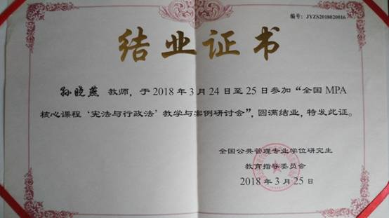 教师孙晓燕参加了由全国公共管理专业学位研究生教育指导委员会和教育部学位与研究生教育发展中心主办、北京大学政府管理学院承办的全国MPA核心课程 “宪法与行政法” 教学与案例研讨会。本次会议共有63家MPA培养院校的76位教师代表出席。此次研讨会旨在进一步改进MPA核心课程“宪法与行政法”的教学内容与方法,更好地把握学科发展最新动态,提高教学效果。