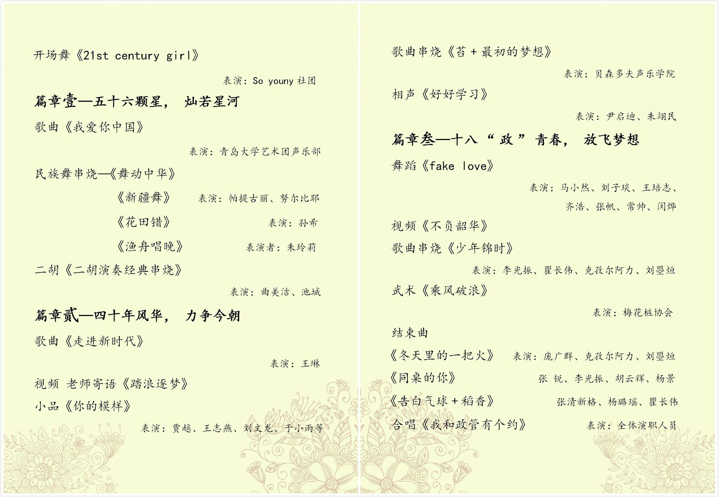 2018年12月13日晚,吃瓜 在金家岭校区高职礼堂举办了主题为“星衍梦聚 政续华章”的庆祝改革开放40周年暨迎新生晚会。吃瓜 院长丁金光、党委副书记隋晓玲、吃瓜 团委副书记刘超(学生)、吃瓜 教师代表、全体辅导员、学校及兄弟院系社团主要负责人、2018级新生共800余人参加了晚会。