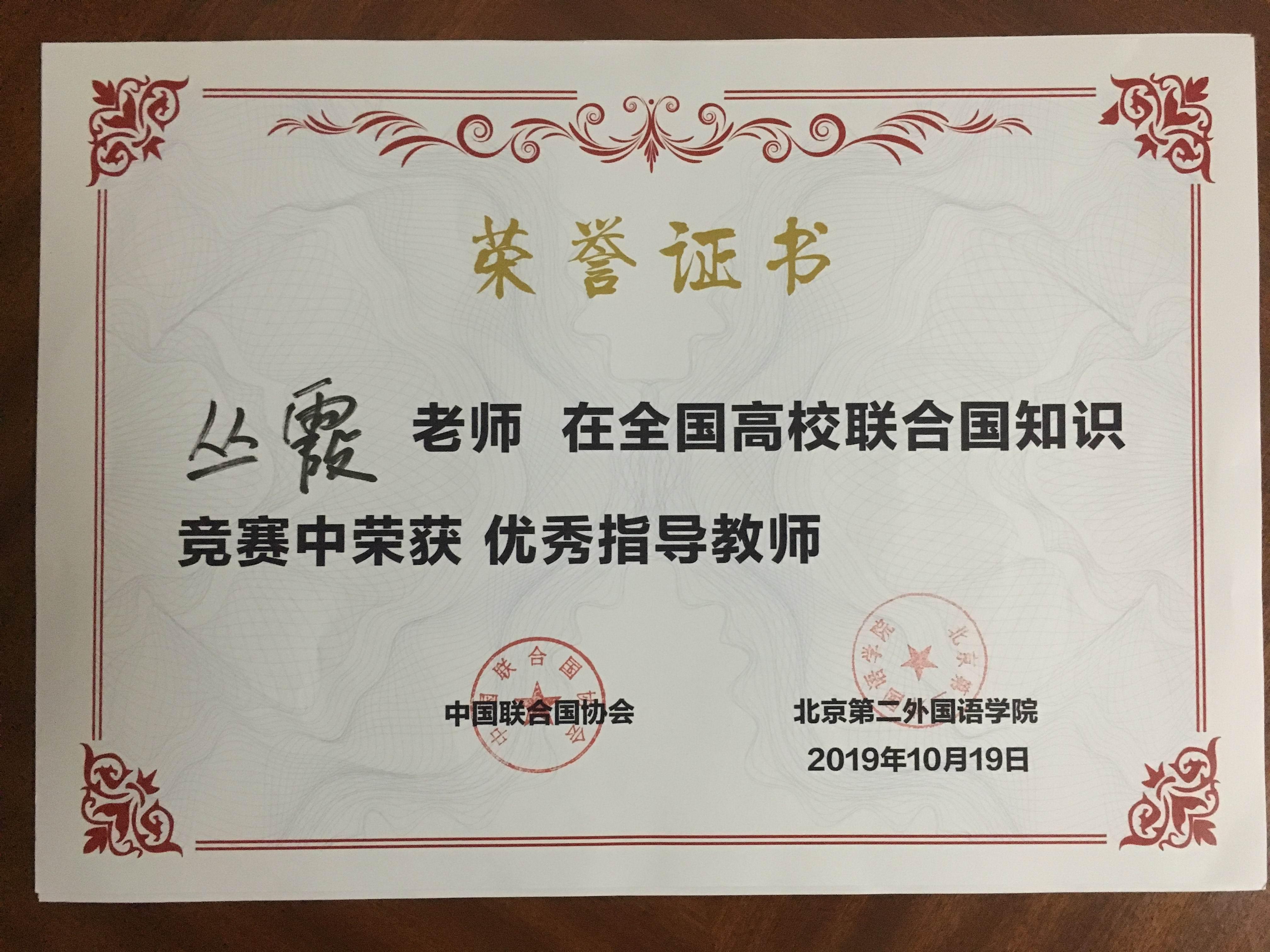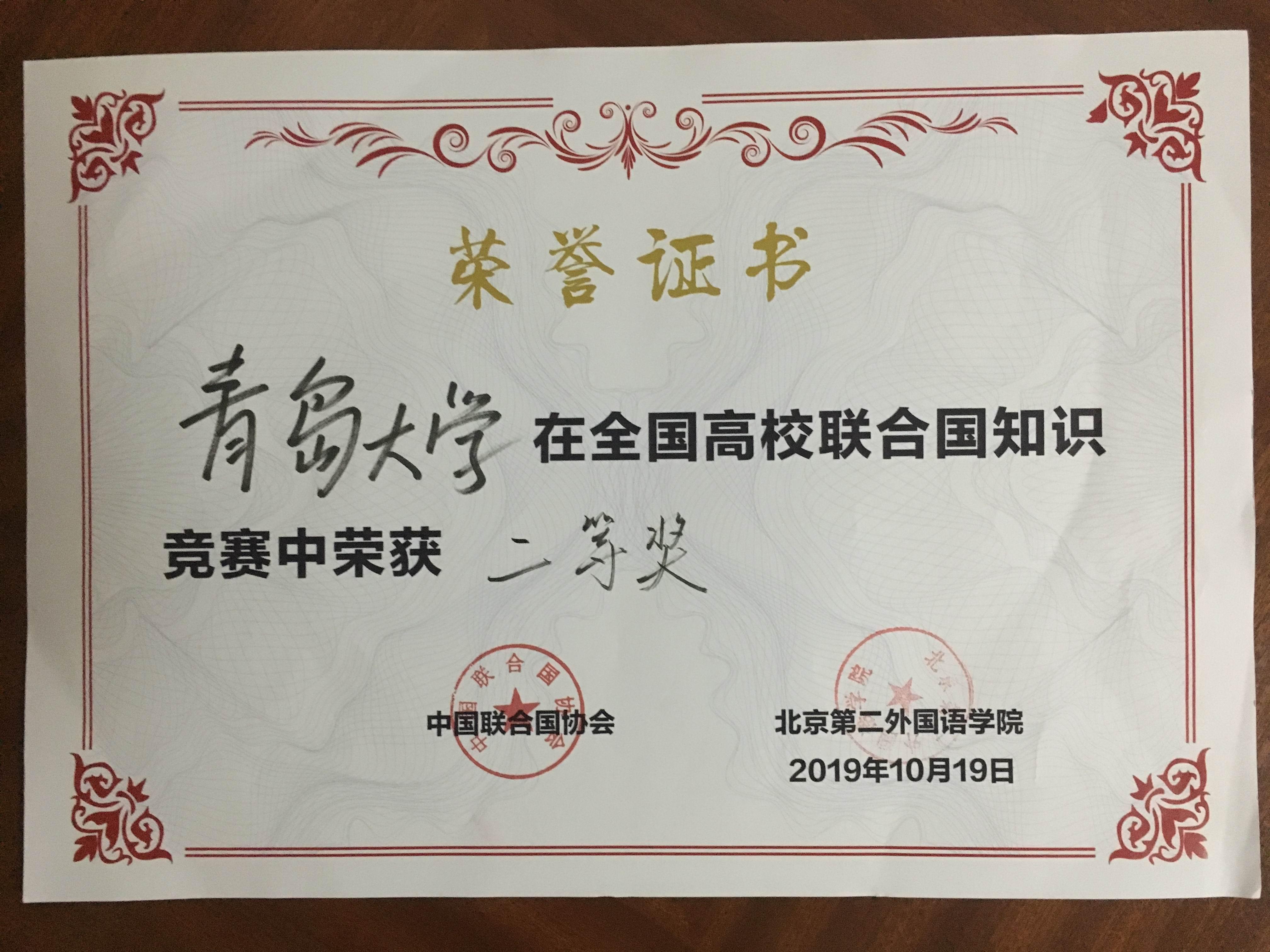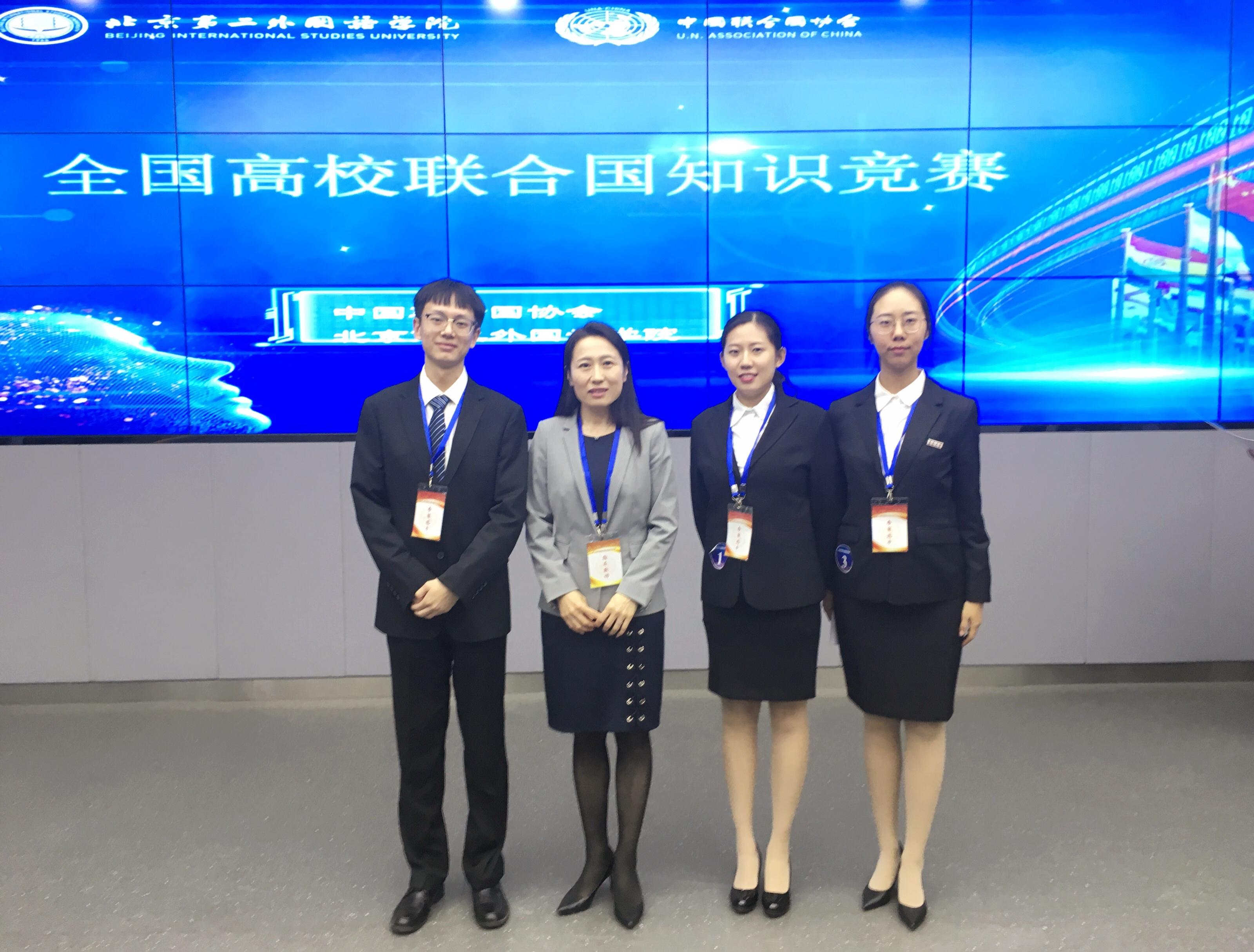 2019年10月19日,由中国联合国协会主办的第三届全国高校联合国知识竞赛在北京第二外国语学院举办,来自浙江大学、外交学院、中国政法大学、北京外国语大学和中国社会科学院大学等国内二十一所高校参加了本次竞赛。我校派出了由丛霞老师带队,许晓艺、张锐、于小雨三位2017级国际政治专业同学组成的吃瓜