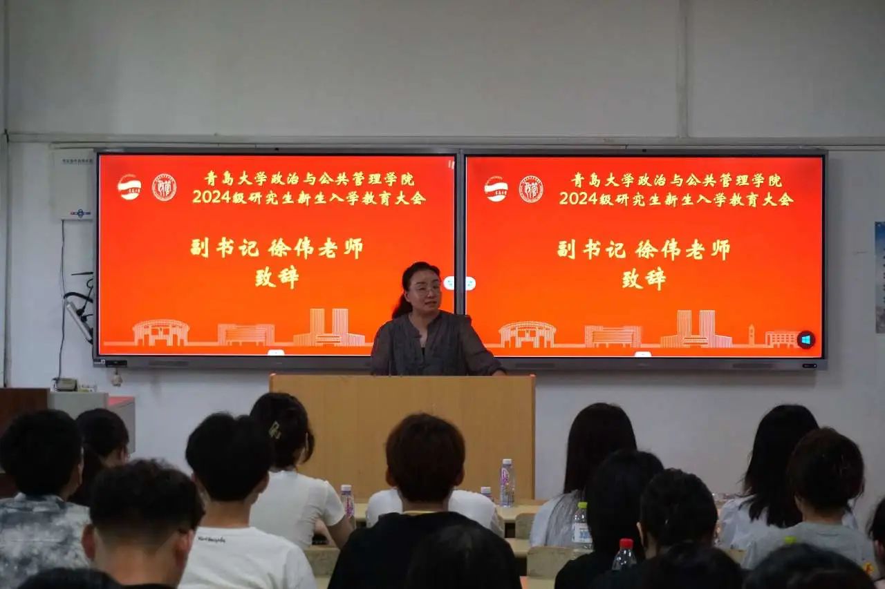随后,徐伟代表学院全体师生向2024级研究生新同学的到来表示热烈欢迎,希望大家能够在感受政管学院大家庭温暖的同时,不忘从勇担重任、尊师重道和投身实践三个方面严格要求自己,锻炼自己,合理规划,立足行动,收获一个充实快乐、硕果累累的研究生生活。