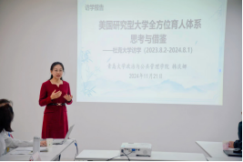 韩庆娜在报告中分享了在杜克大学旁听专业课程、参加学术会议、参与国际交流以及调研访谈等经历,并基于杜克大学丰富而多元的课程体系、跨学科与前沿性的科研环境以及国际化与实践性的育人模式分析了美国高等教育在人才培养和科研激励等方面的先进经验,最后提出学院在研究生培养与教育上拟采取的新思路与新举措。