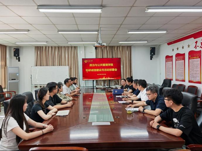 关于开展科研诚信建设月活动的通知》精神和要求,结合学院实际情况,安排部署了学院科研诚信建设月活动,并带领大家学习了《科研失信行为调查处理规则》(国科发监〔2022〕221 号)、《教育部关于加强高等学校科研诚信建设和学术不端治理的指导意见》(教科信〔2024〕2 号)和《高等学校学术不端行为调查处理实施细则》(教科信〔2024〕3 号)等文件。