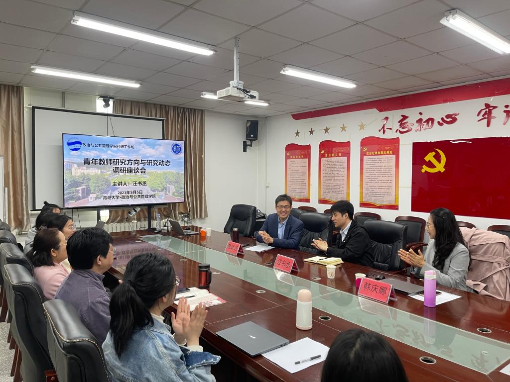 (纪检监察学院)在金家岭校区2号实验楼214会议室举办青年教师研究方向与研究动态调研座谈会。会议特邀《中国社会科学》杂志社汪书丞编辑进行科研选题与论文写作指导。座谈会由副院长韩庆娜主持,院长陈洪连及青年教师代表、研究生和本科生代表参加了座谈会。